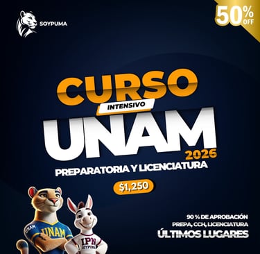 En SoyPuma, sabemos lo que se necesita para alcanzar un lugar en la UNAM. Nuestro curso de ingreso está diseñado para quienes buscan ingresar a preparatoria o licenciatura, ofreciéndote una preparación completa, en línea y con material 100% exclusivo.
